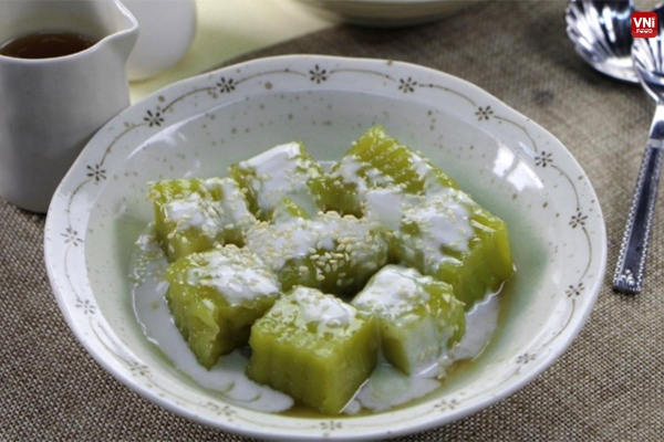 Pandan Rice Cakes (Banh Duc La Dua) With Coconut Milk is delicious and easy to make. The beautiful green steamed rice cakes with greasy coconut milk and sweet jaggery are so hard to resist.